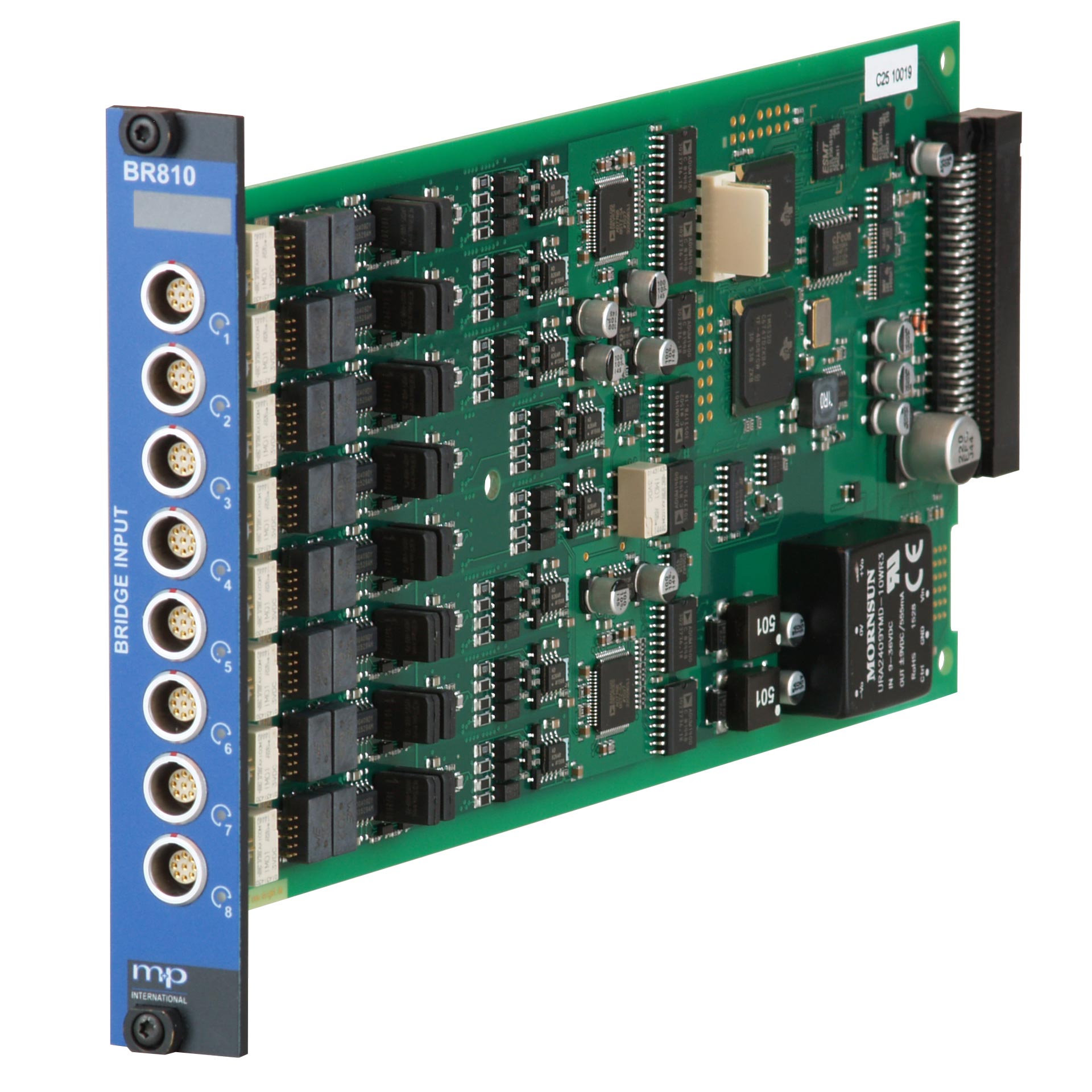 Die acht analogen Eingangskanäle besitzt jeweils einen separaten Analog-Digital-Wandler mit 24 Bit Auflösung und einer maximalen Abtastrate von 1.2,4 kHz. Die Kanäle werden exakt synchron abgetastet. Für die Versorgung der Brücken stehen je Kanal programmierbare Spannungen zur Verfügung. Natürlich kann das Mess-Modul auch für normale Spannungsmessungen verwendet.