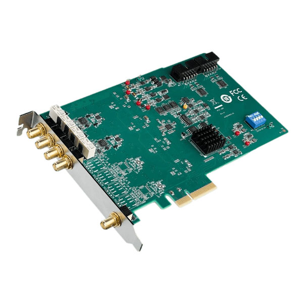 Pro Kanal verfügt sie über eine Abtastrate von 20 MS/s pro Kanal. Die Messkarte hat eine On-Board-FIFO-Größe von 65,536 Samples. Die Kommunikation mit dem Host-PC erfolgt über ein PCI-Express Businterface.